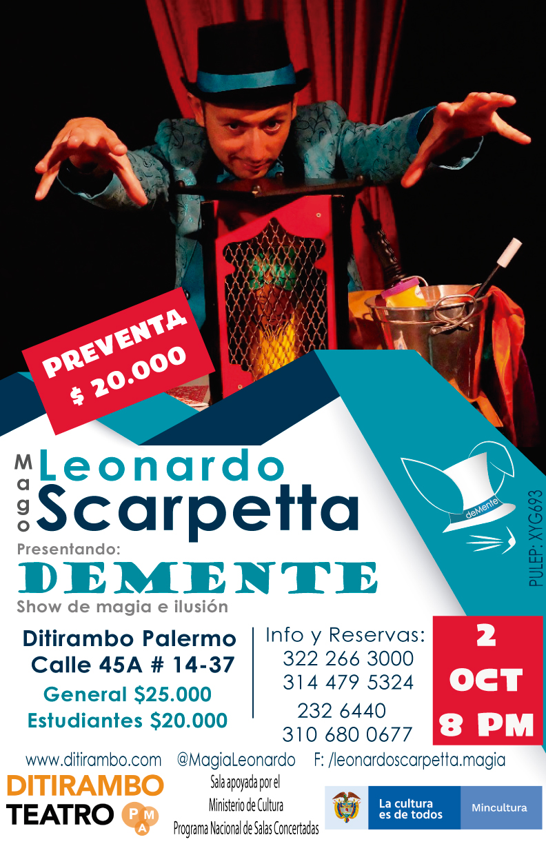 Leonardo Scarpetta es un reconocido mago profesional colombiano con una amplia trayectoria en shows de magia privados, públicos y corporativos de alta calidad.